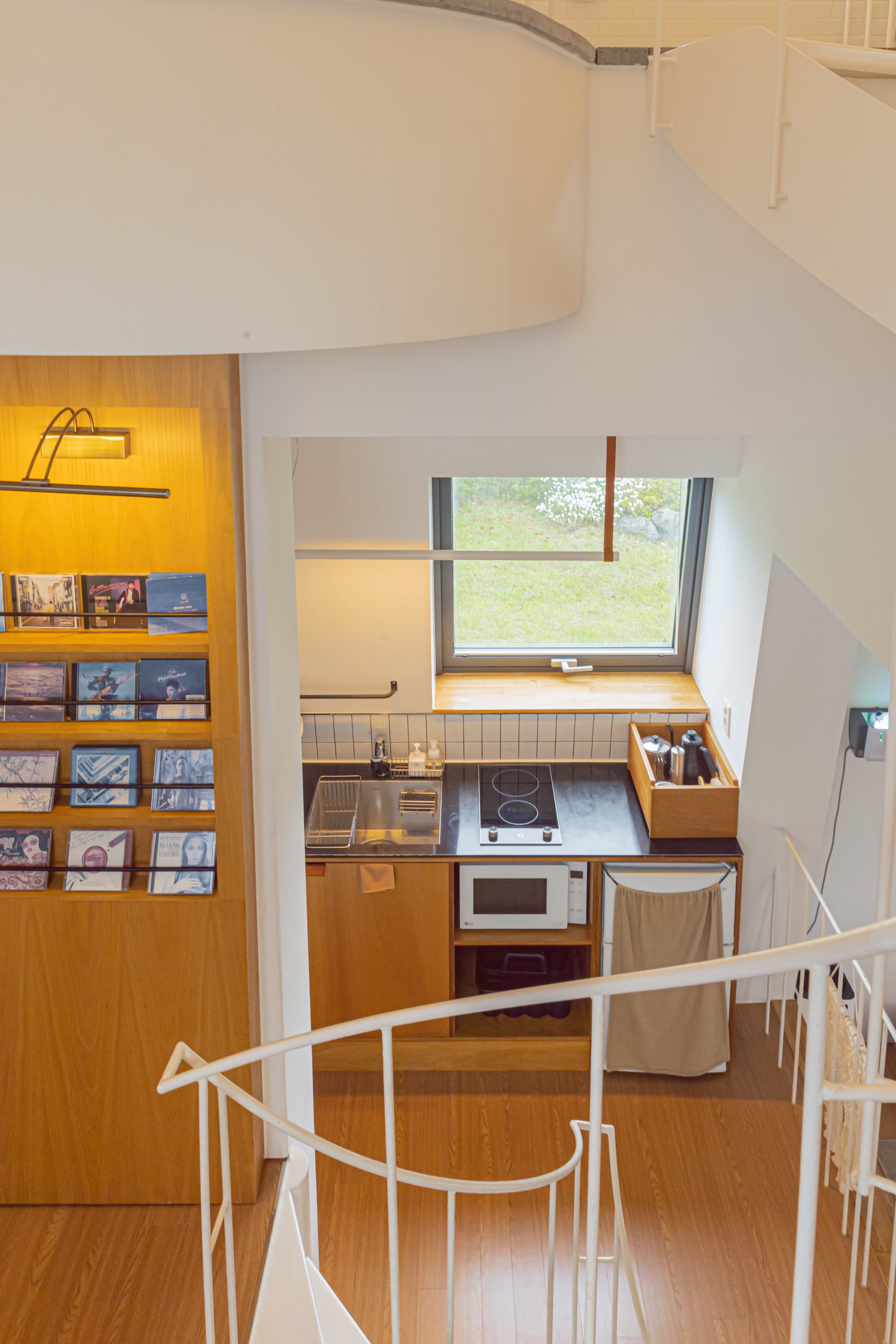 원형 계단을 따라 반층 올라가면 만날 수 있는 로프트 롯지의 키친은 캠핑 스타일의 식기들과 함께 즐겁고 편안하게 시간을 보낼 수 있도록 마련되어 있습니다. 특별히 마련된 커피 드리퍼 세트를 활용해 커피를 마셔보세요. 당신의 아침을 더욱 소중하게 만들어줄 것입니다.